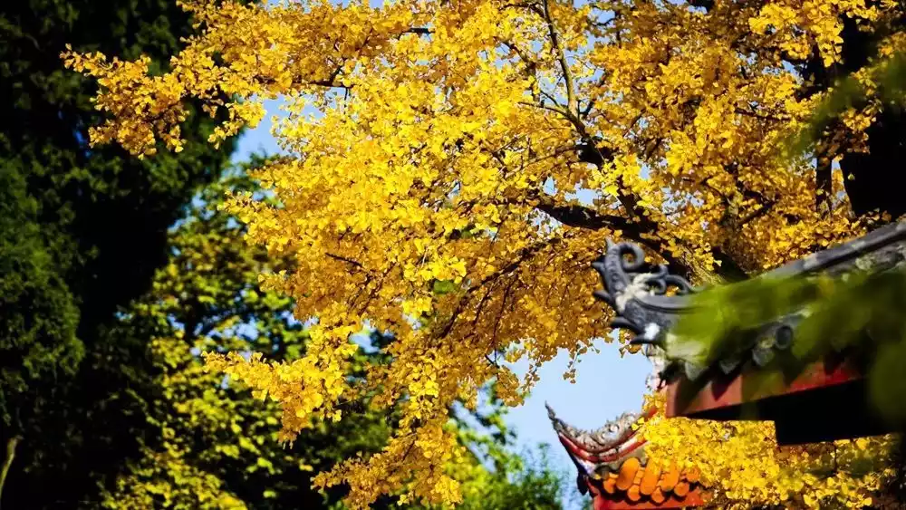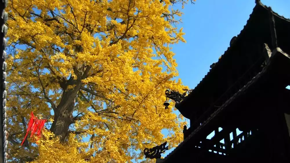 Built deep in the mountains. The breathtaking beauty of the mountains and clear waters accompanies the temple year after year. The steep, treacherous mountain peaks and long, dangerous paths perfectly test the pilgrims' devotion. Ming Dynasty monks planted thousands of ginkgo trees here, but by 1989, only a dozen remained. One ginkgo tree dates back to the Xia and Shang dynasties. Its nine branches, each over eight meters tall, were once featured on a television program over a decade ago as a peerless tree, a living fossil. It stands as one of the world's rarest remaining tree species. As the weather in Chengdu grows colder, the ginkgo leaves yellower. If you're looking to escape the hustle and bustle of the city, choose a sunny day and visit Baiyan Temple in Dayi County to admire the beauty of the ginkgo trees.