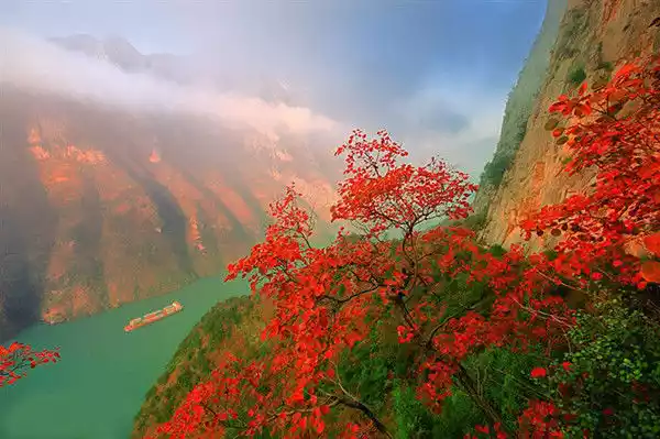 Wushan's temperatures create the perfect conditions for the growth and formation of crimson leaves, creating a spectacular display across the Yangtze River's Three Gorges. Located in the heart of the Three Gorges, Wushan boasts the largest concentration of crimson leaves in the region, creating a breathtaking spectacle of mountains blanketed in crimson and forests ablaze with color. Entering Wushan is like stepping into a magnificent canvas of crimson leaves.