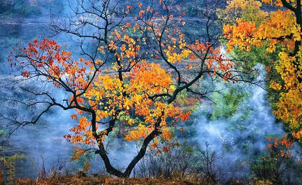 It is colorful in mid-autumn, the forest is dyed with colors in late autumn, and it is a sea of red in early winter.