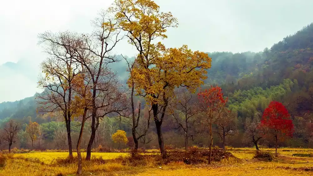 Based on past experience and this year's conditions, November is the best time to view the maple leaves. If there's not much rain in late October or early November and there are plenty of sunny days, the leaves in Wuyuan will appear vibrant red and yellow and resist falling, a condition that persists until early December.