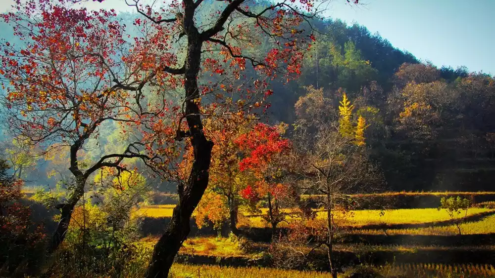 1. Changxi Village with stunning autumn scenery (sunset, red maples, pastoral scenery, etc.)