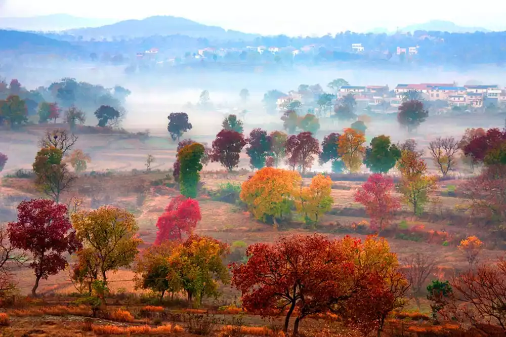 There are Chinese tallow trees throughout Dawu County, especially in Xincheng, Pengdian, Sigu, Xiadian, Fengdian, Liuji and other towns. If you want to choose the best destination for viewing red leaves, it is roughly in the eastern part of Dawu. The best places to enjoy red leaves in Dawu are: