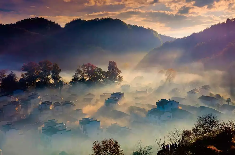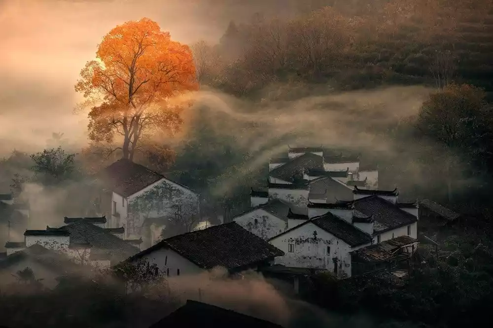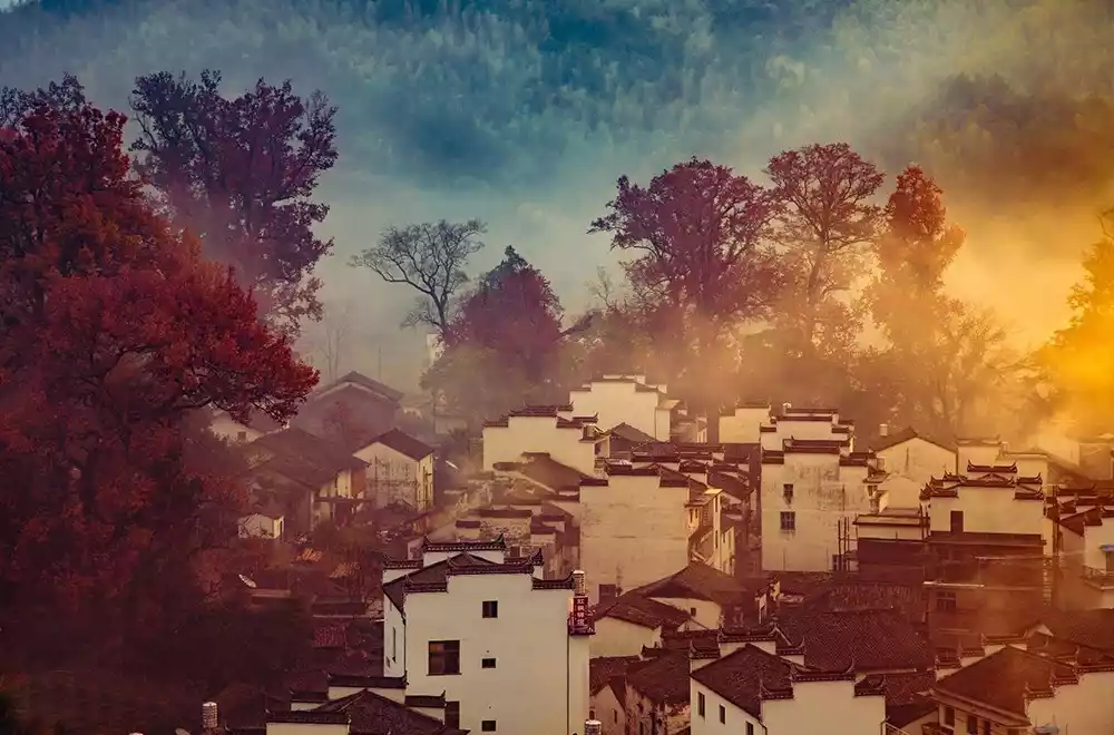Wuyuan in Jiangxi Province is known as "China's Most Beautiful Village," boasting the most intact collection of ancient Hui-style architecture and breathtaking red foliage shrouded in mist. Therefore, every late autumn marks China-TravelNote's annual Wuyuan Stone City Autumn Scenery Tour. Under the setting sun, the ancient Hui-style villages glow a fiery crimson, truly living up to East China's renowned reputation for autumn colors.