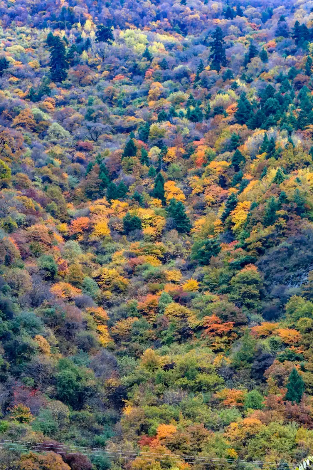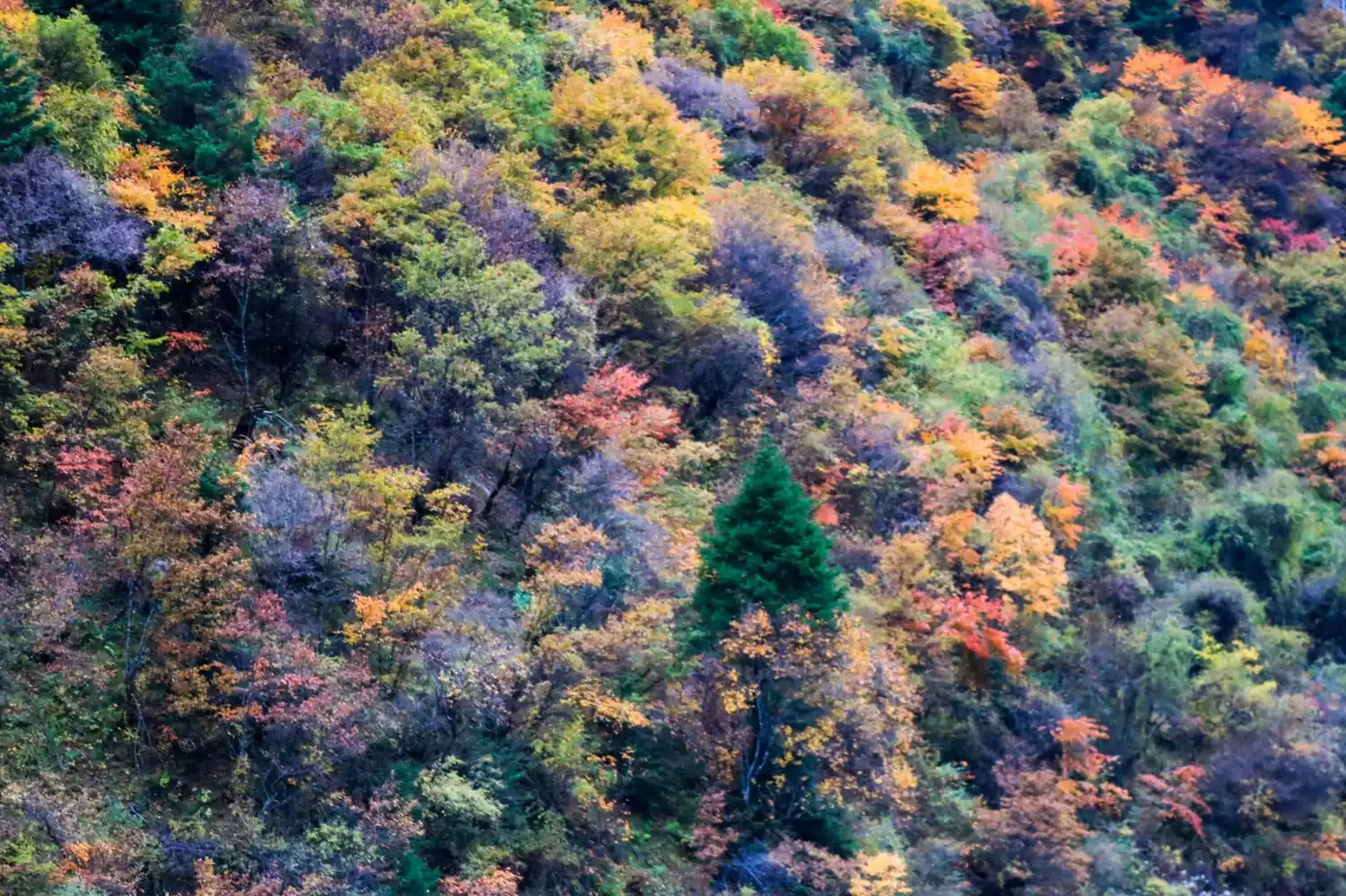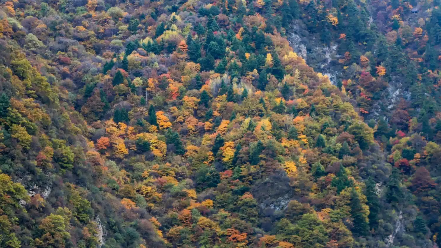 Naizigou is located in Heishui County, Aba Tibetan and Qiang Autonomous Prefecture, Sichuan Province. The colorful forests of Naizigou are not concentrated solely in Naizigou Village, but also extend along the entire stretch of road from Heishui County to Naizigou Village. The magnificent Naizigou colorful forests stretch for 80 miles, creating a magnificent spectacle. The main tree species are birch, pine, cypress, maple, and various other trees, interspersed with a variety of coniferous, broad-leaved, secondary, and shrub forests, densely covering every slope.