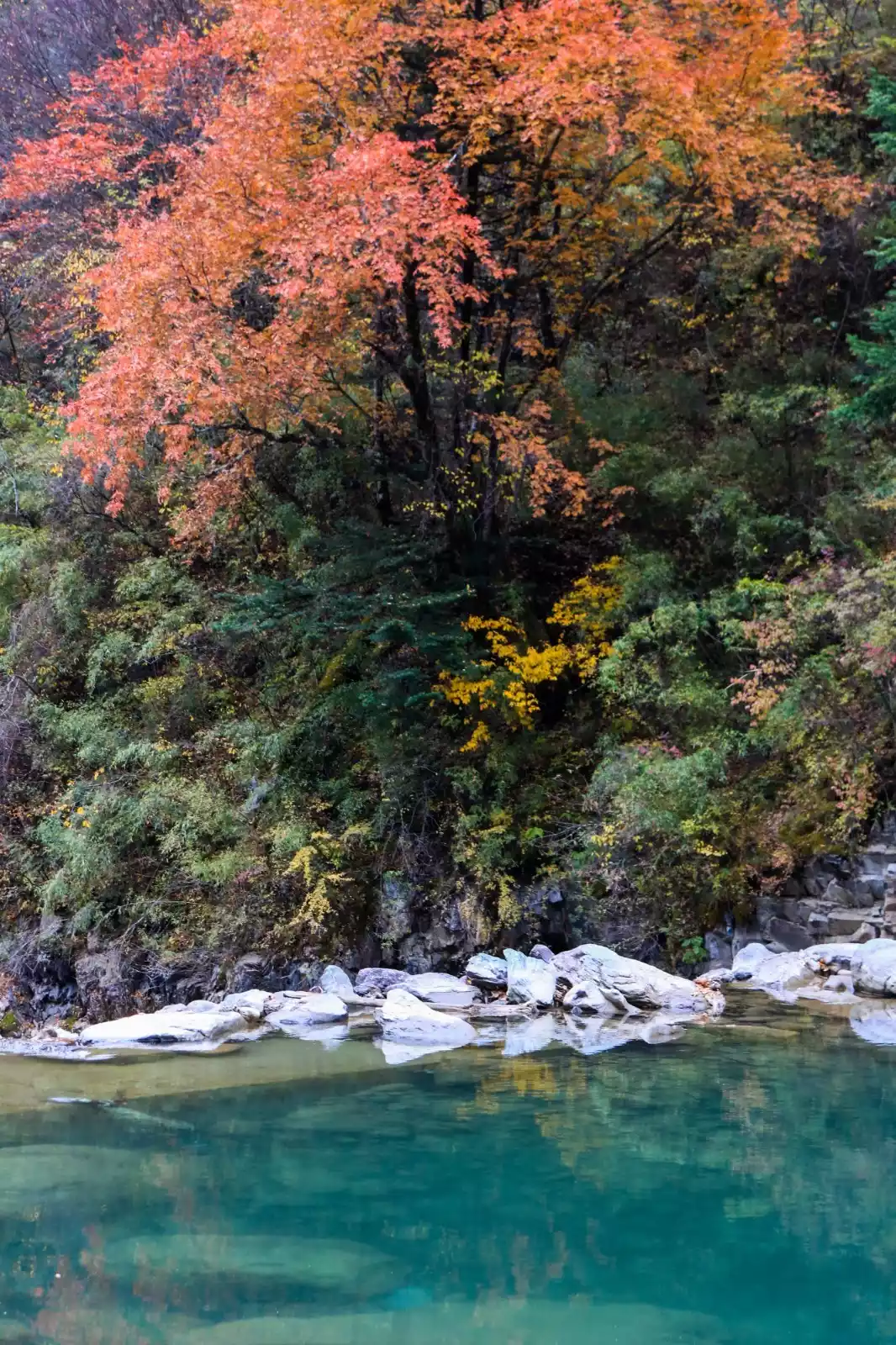 Most tourists staying in Heishui typically drive all the way to Qicai Jiazu and then Yangrong Hade. After all, the beautiful scenery along the way is irresistible, so they can't help but stop to take photos. However, for a better experience, resist the temptation of the colorful forests along the way and go the opposite way to avoid the crowds. You can drive directly to Yamai Lake, stop briefly, and then return to Yangrong Hade to grab a spot and take as many photos as you can. Wait until the main group of tourists arrives before heading to Qicai Jiazu.