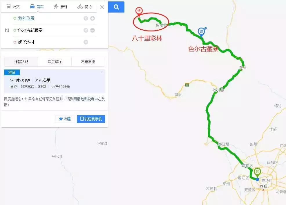 Itinerary: Chengdu - Wenchuan - Maoxian (lunch) - Heishui County - Naizigou, a round trip of about 650km. The journey is long, so it is recommended to depart early.