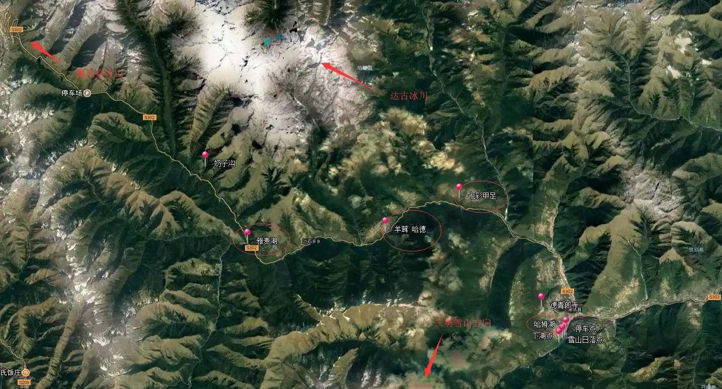 In addition to the colorful forests, there are many scenic spots dotted among them. The most eye-catching ones are the emerald green lakes. Along this route, Ham Lake, Yamai Lake, and Luolicuo Lake are all lakes where you can take photos of the reflections and colorful forests.