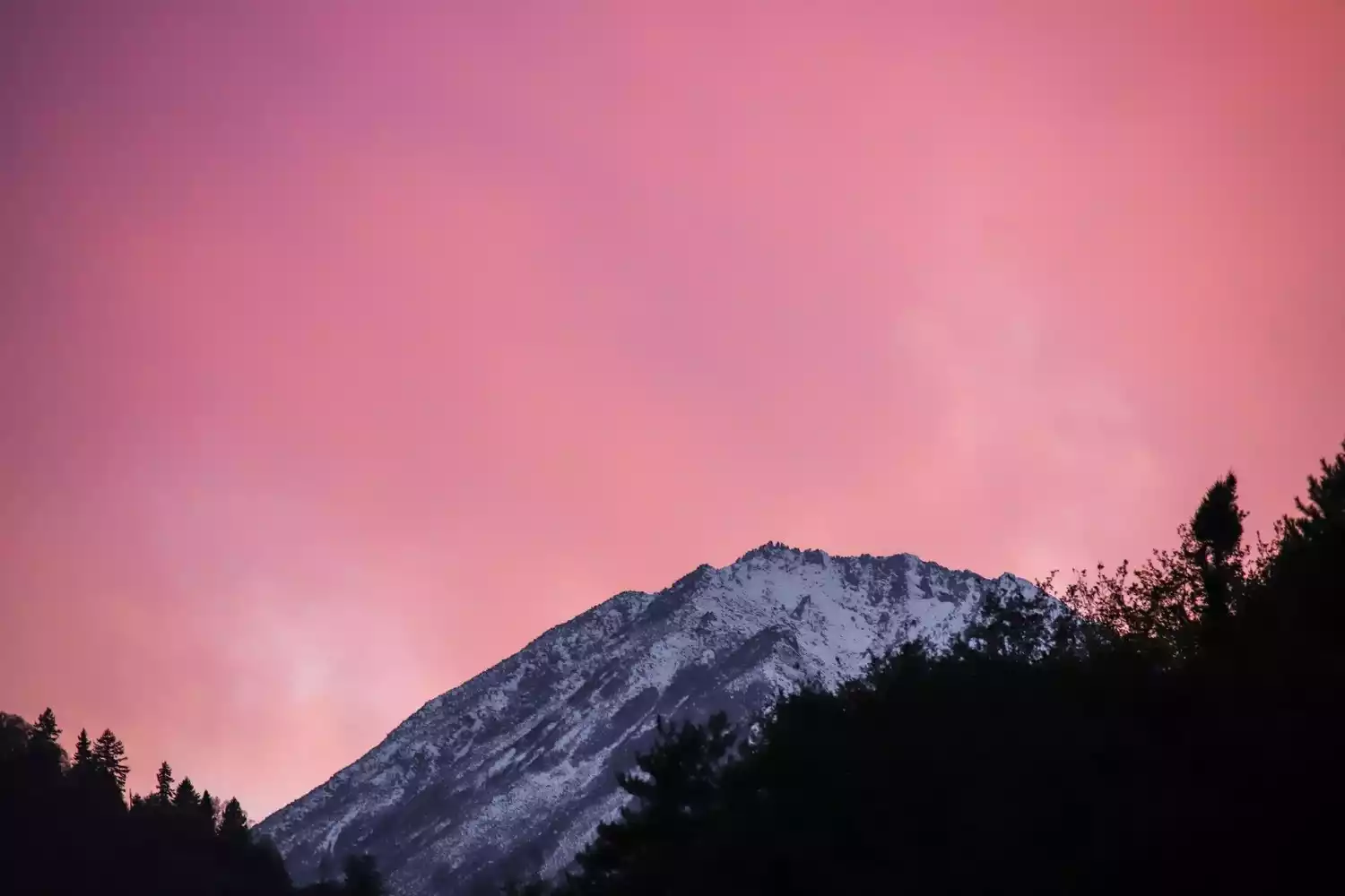 (The picture shows the snow-capped mountain sunset taken at point 3)