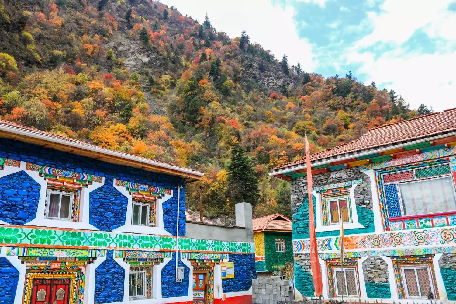 The "Seven-Colored Jiazu" Tibetan village is located in the middle section of Naizigou, Heishui County, Sichuan Province, along Highway S203. The houses are adorned with vibrant colors. In late autumn, the colorful forests of Naizigou shimmer in vibrant colors, and the Seven-Colored Jiazu Village is a must-see for visitors. Stop here for a tour, food, and lodging. The houses in Jiazu Village are truly unique, each boasting a variety of colors, a rarity in other Tibetan villages. This earns them the nickname "Seven-Colored Jiazu." The buildings and exterior paint look brand new, making for stunning photos.