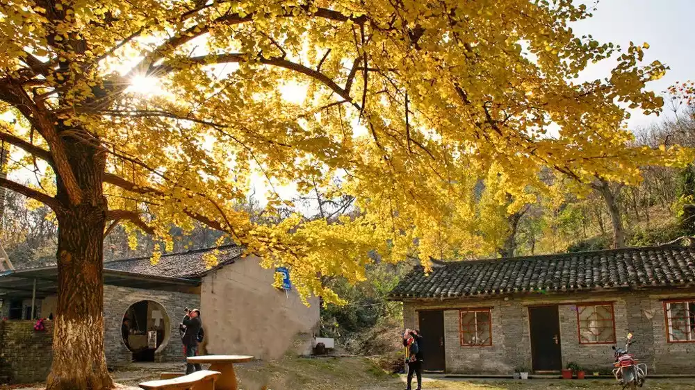 "There are mountains, water, and people's houses." Naturally, there are people in Ginkgo Valley, and farmhouses next to ancient trees are a standard feature.