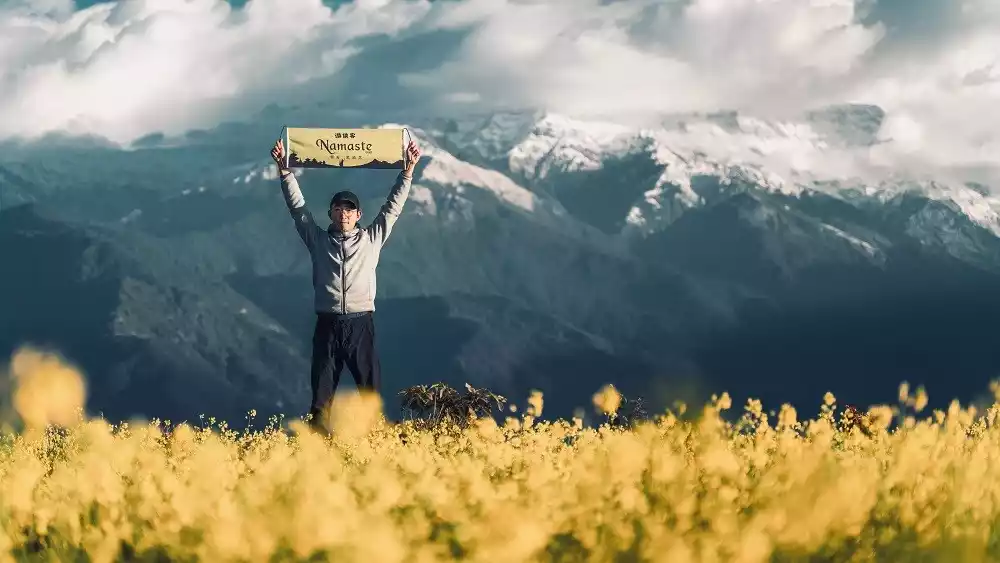 Spring is the best time to hike, aside from autumn. The snow melts, grass grows, and birds sing and flowers bloom. First, the canola blossoms that cover the hillsides as you enter the mountains complement the endless golden landscape and the snow-capped mountains. It's an experience you won't have before, and it's truly magnificent!