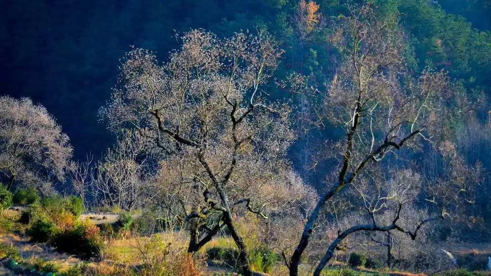 Diaoqiaogou Forest Farm boasts thousands of acres of fir and camellia trees, and tens of thousands of acres of maple and mixed forests. In early winter, the forests are ablaze with crimson, blanketing the mountains. Lush green camellia and fir trees adorn the landscape, while pristine white camellias bloom in full bloom. In spring, azaleas blanket the mountains. Due to long periods of sparse human habitation, the mountains boast a remarkably healthy natural environment, with fully covered vegetation and no pollution. It is a rare "pure land on earth" and a "paradise" in the heart of the Dabie Mountains.