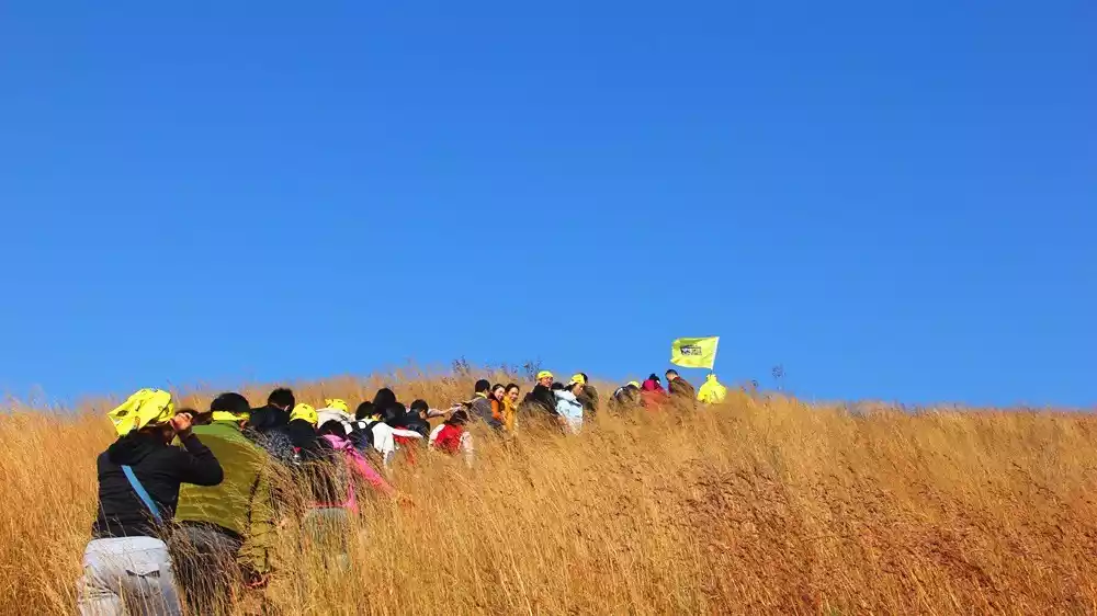Longwangjian is nestled against Kuangshan Mountain to the north, overlooks Wuhan to the south, and overlooks Mulan Mountain and Mulan Lake to the east. The main peak, Longwangjian, stands at 385.6 meters above sea level and is a remnant of the Dabie Mountains. Longwangjian, a relatively low mountain, is renowned for its extensive meadows and ancient fortresses and castles. In autumn, the golden meadows of Longwangjian stretch across dozens of peaks, creating a scene reminiscent of Wugong Mountain in Jiangxi Province.