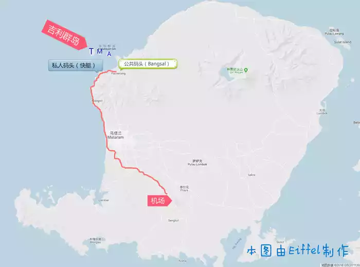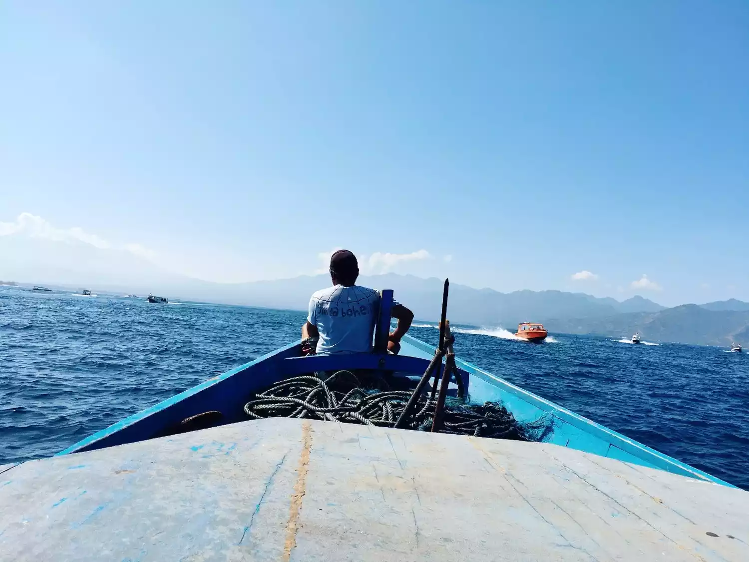 There are two labels in the upper left corner of the previous image, indicating two ways to get to the Gili Islands from the pier. One is from a private pier, where you can take a speedboat to the island of your choice in a very short time, but the price is relatively high. The other is from Bangsal Pier, where you can take a public boat. The fare is very cheap, less than 10 yuan per person, making it suitable for budget travelers. However, it is like a bus, stopping at each island to pick up and drop off passengers, although this part of the journey is not very time-consuming.