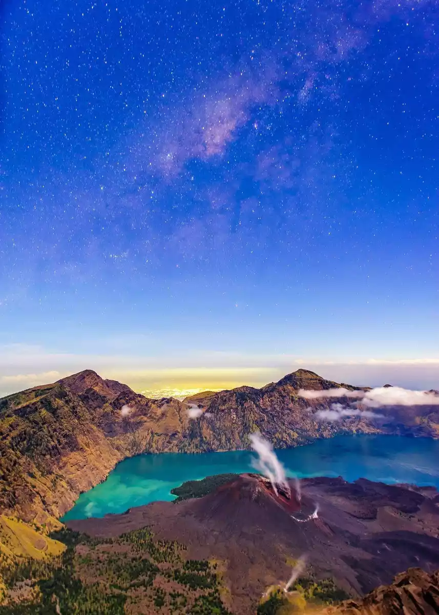 The first day's itinerary is the same as above. On the second day, we will go down from the camp to the volcanic lake (2000 meters) and soak in the volcanic hot springs. Then we will climb 600 meters to Sembalun Rim (2639 meters) to camp. On the third day, we will get up early (around 3 am) to watch the sunrise at the summit, then go down to the campsite for breakfast and then go down the mountain.