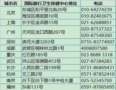 Hangzhou Address: China Inspection and Quarantine (Zhejiang International Travel Health Care Center), No. 2 Wensan Road, Xihu District, Hangzhou; 0573-87852410/87852407