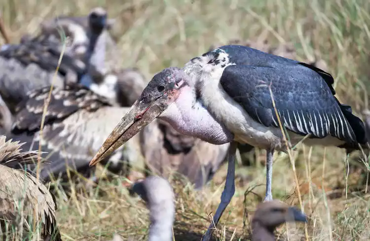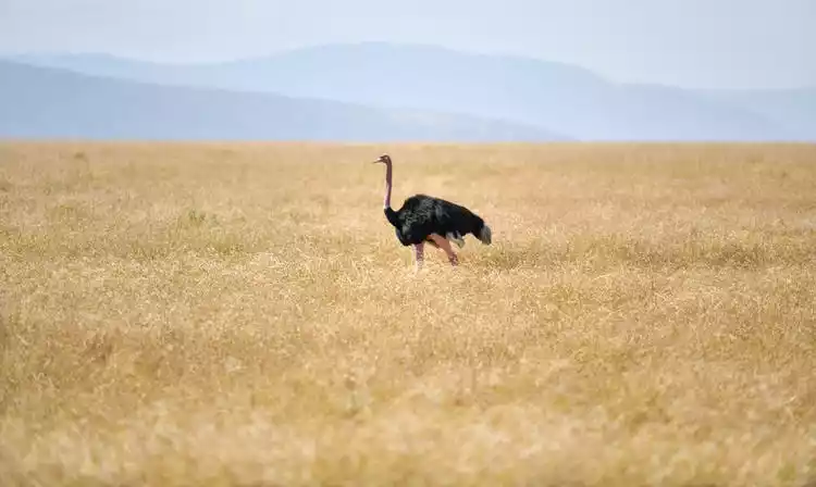 The world's largest bird, it stands out particularly tall in Africa, measuring 2 to 2.5 meters tall. Its neck is pink, white, or gray, and its feathers are black or gray.