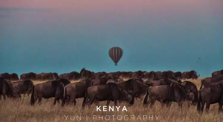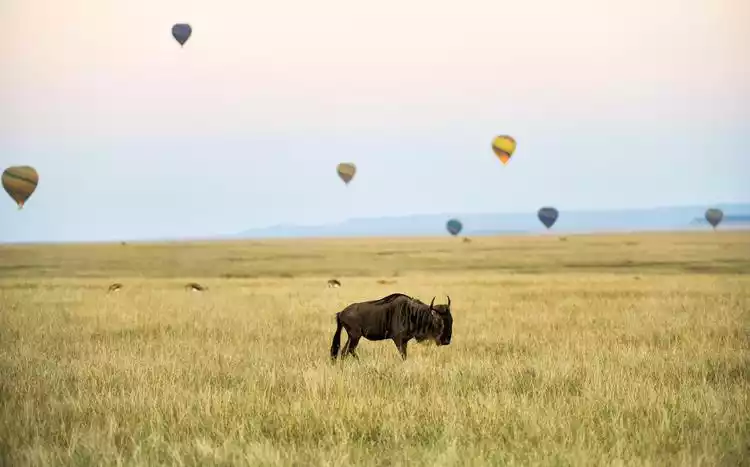 The next day we got up early and split into two groups, one to ride a hot air balloon and the other to take pictures of the sunrise. The hot air balloon and the wildebeest go very well together.