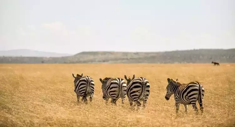 Zebras are walking in a row, and their buttocks are the sexiest in all of Africa.