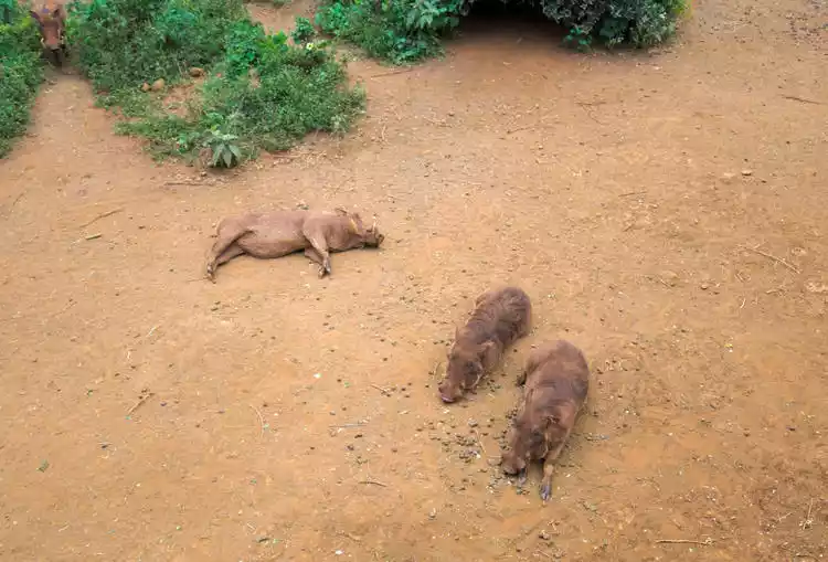 In addition to giraffes, there are also a bunch of super cool warthogs here, which are Pumbaa from the Lion King. They are very lazy and are probably domesticated and are just waiting for you to feed them.