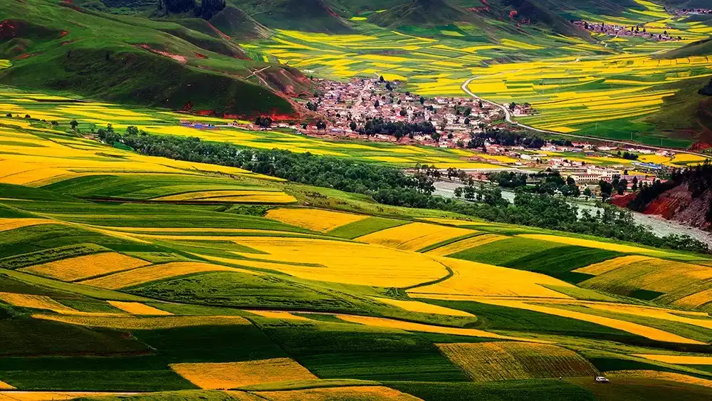 Mid-July is also the perfect time for photographers to capture the spectacular rapeseed blossoms. To capture these magnificent fields, it's crucial to choose the right location to avoid wasting this stunning scenery. The following three locations are ideal for capturing the Menyuan rapeseed fields.