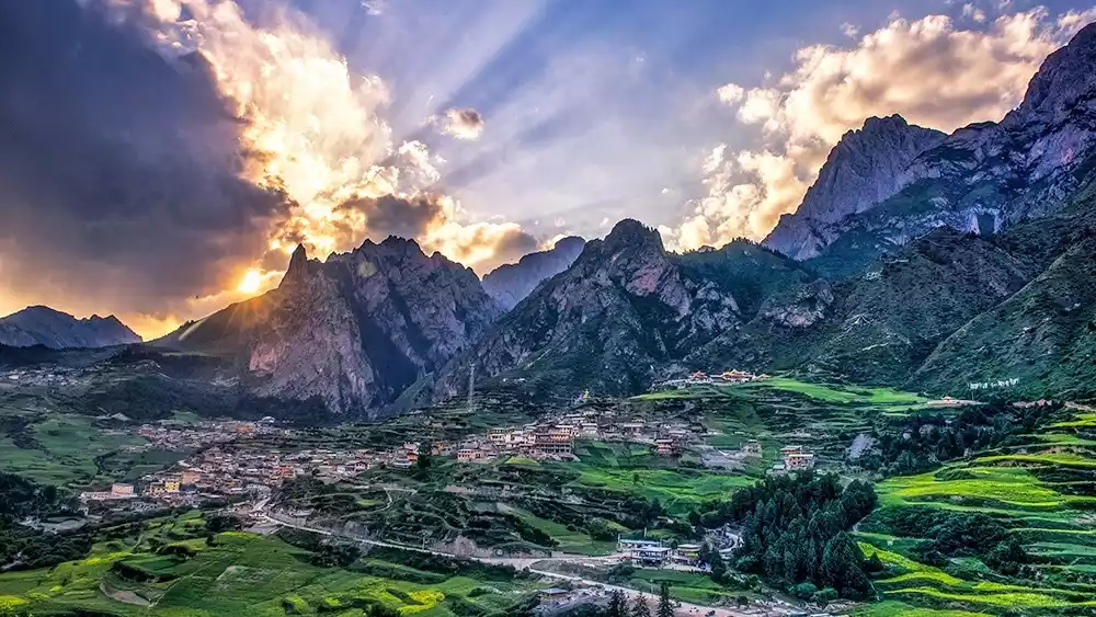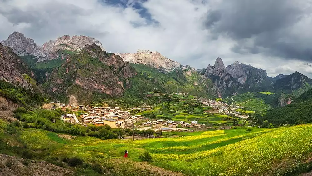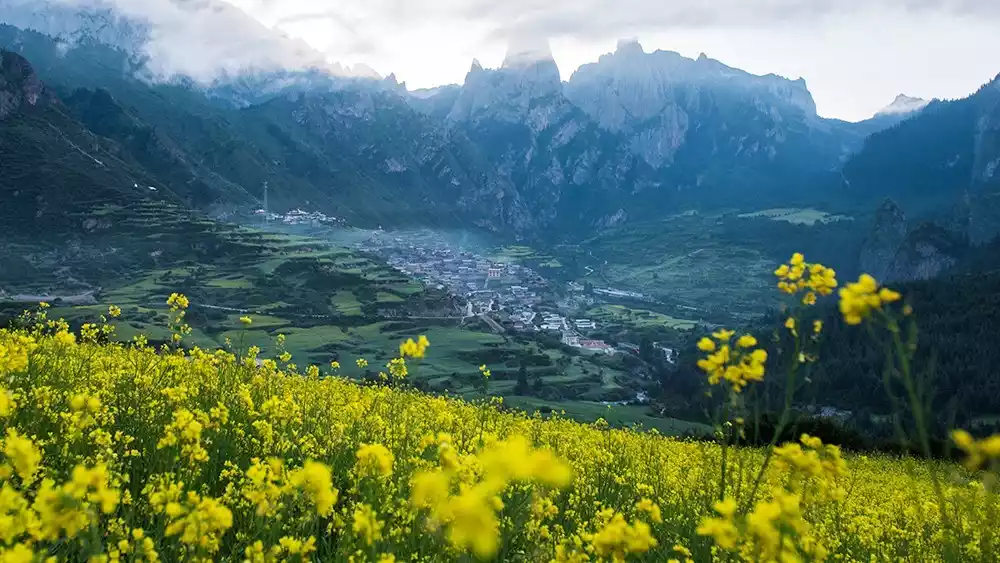 The rapeseed flowers in Zhagana are not widely distributed, so not all viewing platforms offer a view. We recommend visiting Yeri Village, the neighboring village of Zhagana. About 100 meters along the main road past Dari Village, there's a viewing platform from which you can capture the sunrise over Zhagana. In July, the rapeseed fields are in the foreground, while the Zhagana Stone City and steep cliffs are in the background, creating a truly spectacular sight. The distance from Zhagana to the Yeri Village viewing platform is approximately 2 kilometers, accessible on foot or by chartered car.