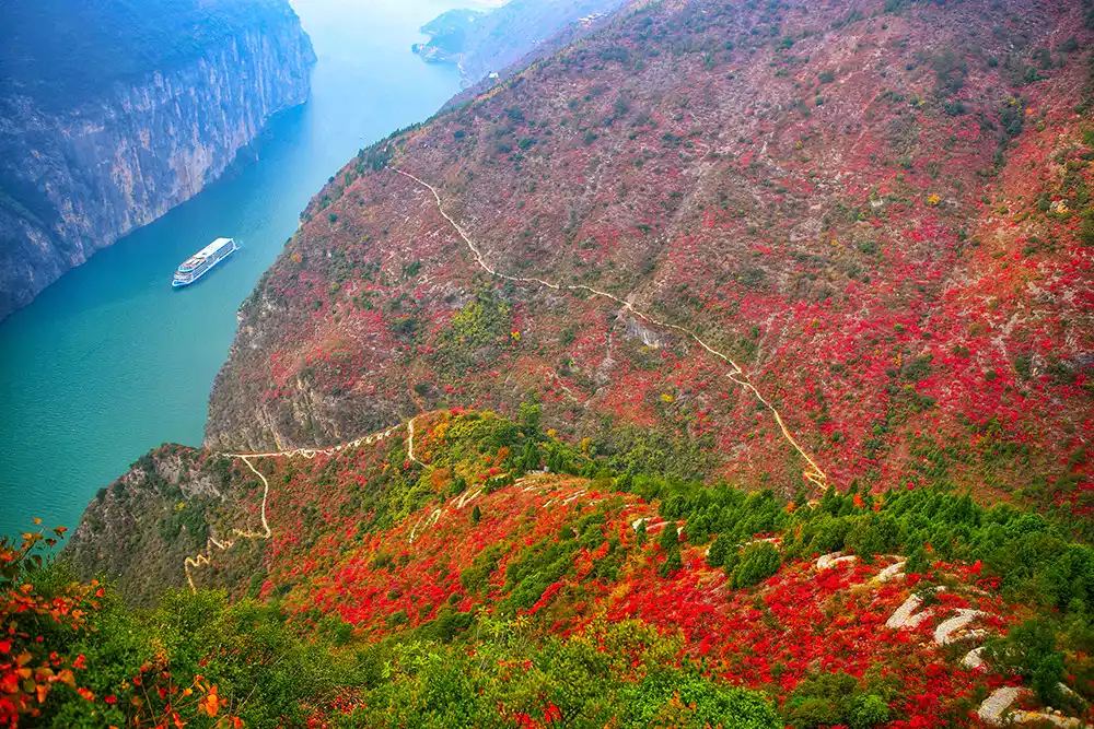The best time to enjoy the red leaves in the Three Gorges is in early winter. Because the Yangtze River basin has more moisture and the temperature is lower, please prepare warm clothes and rain gear.