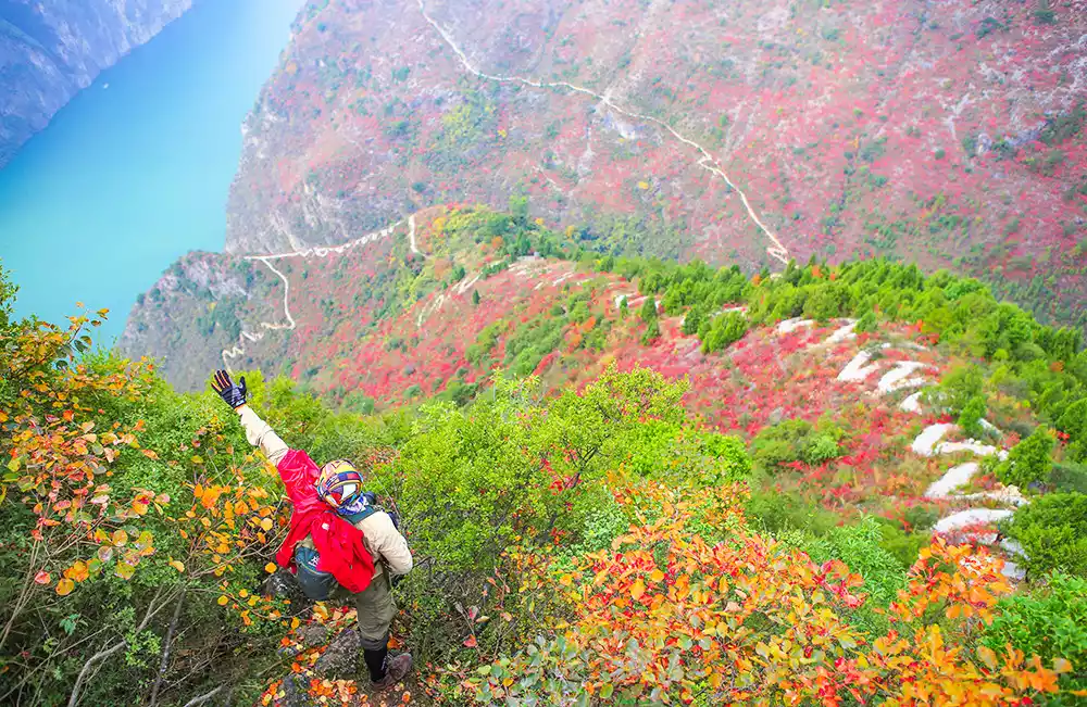 In addition to the Wuxia Gallery, where the red leaves are most concentrated, the red leaves in the Kuimen section of Qutang Gorge are also very spectacular and worth a visit.