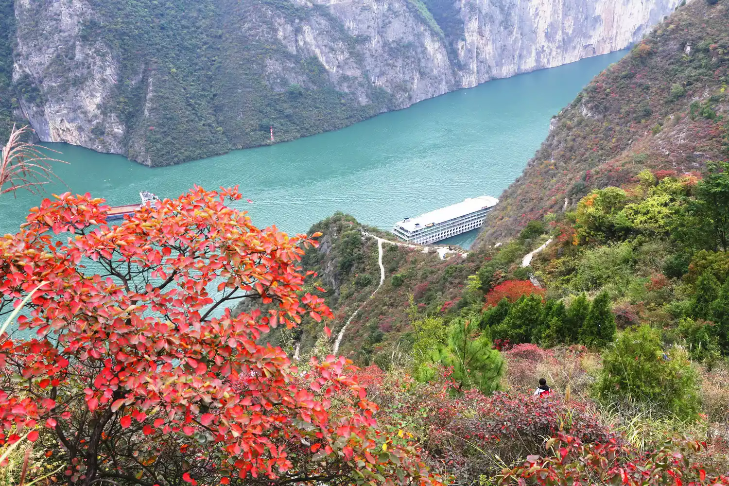 The red leaves of the Three Gorges are on the mountains. If you take a traditional boat tour of the Three Gorges, you should choose a special voyage, that is, a voyage that allows you to stay ashore in Wu Gorge specifically to view the red leaves. I won’t introduce it here, and will talk about it in the next batch of cruises to the Three Gorges.