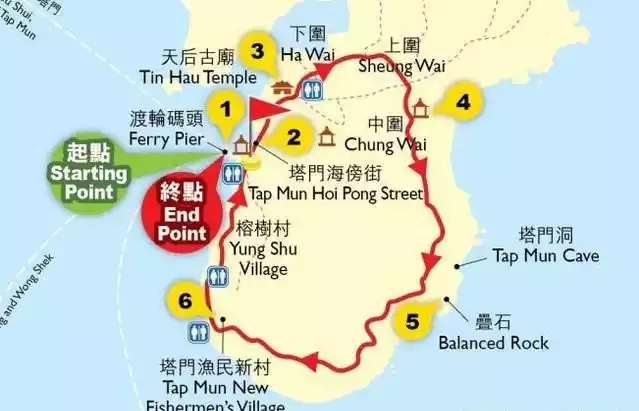 Tap Mun Island is neither big nor small. For ordinary tourists, it is recommended to take the following tour route.