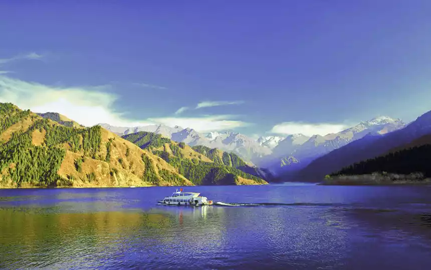 Tianshan Tianchi Lake, located at an altitude of 1,980 meters, is a natural alpine lake with a crescent-shaped surface. Centered on Tianchi Lake, the Tianshan Tianchi Scenic Area features four vertical natural landscape zones, snow-capped mountains, glaciers, and alpine lakes. Drawing on the ancient myth of the Queen Mother of the West, religion, and unique ethnic customs, the scenic area blends forests, grasslands, snow-capped mountains, and cultural landscapes, creating a unique landscape.