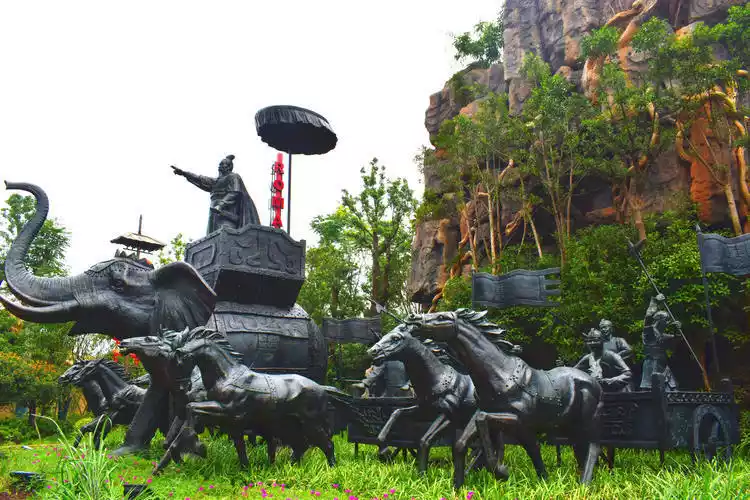 After checking in, the first place you pass is the "King Wu Square", where a group of sculptures recreates the scene of the Battle of Muye. King Wu stands on a chariot, commanding his troops to attack King Zhou.