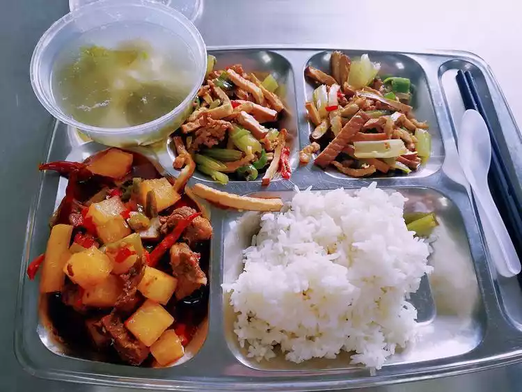 The three and a half hours on the high-speed train from Shenzhen North to Changsha South were long enough for me to have a good dream. Perhaps because I didn't quite understand the plot of "Investiture of the Gods" as a child, I'm now particularly curious about what the scenes were like during that period. With this inquisitive spirit, my imagination ran wild throughout the journey, a trance-like experience. The 11:08 a.m. high-speed train arrived in Changsha South at 2:34 p.m. Upon exiting the station, I saw a "high-speed rail canteen" in front of me, so I went there to fill my stomach. After all, it was a taste of Changsha. The three-dish and one-soup set meal cost 30 yuan. I only chose two dishes that seemed to suit my taste and asked the waitress to give me more of each. It tasted okay, but the rice was cold and hard.