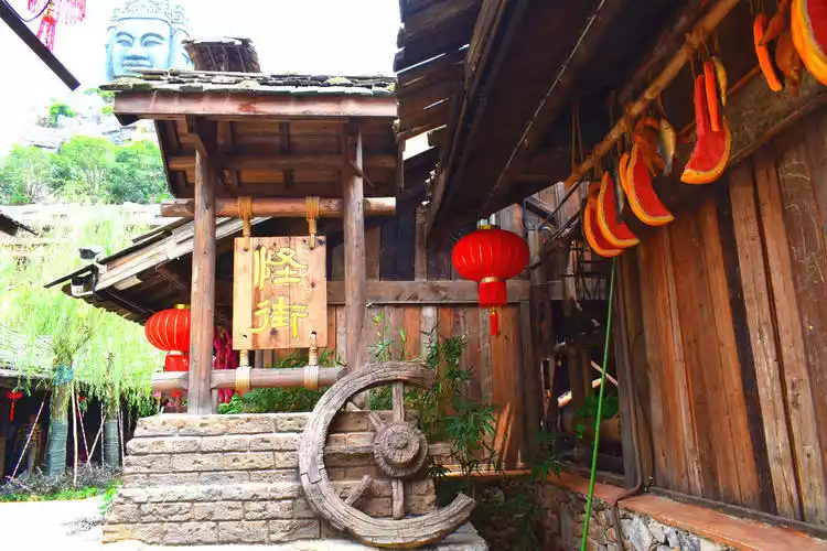 Walking towards the gate of Tanhe Ancient City, you'll see pillars carved with totems on both sides, hence the name "Totem Avenue." The closer you get, the more sacred it becomes.