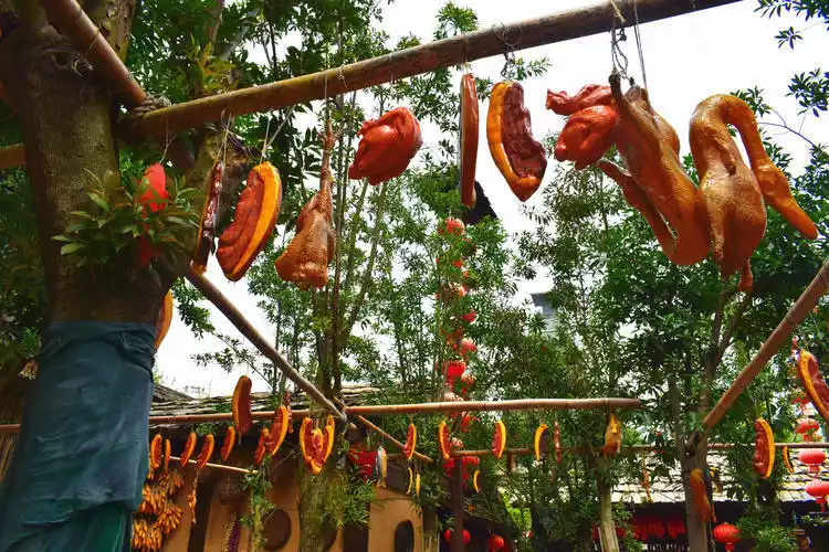 In Tanhe Ancient City, besides various attractions, you can't miss the various food. Walking inside, in addition to the various houses, you can see realistic food hanging in every corner.