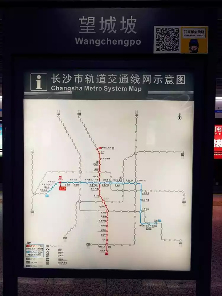 After dinner, I took the subway directly from Changsha South Station and took Line 2 to Wangchengpo Station, which cost 5 yuan one way. The journey took about 50 minutes, with quite a few stops along the way, including May Day Square and Orange Island. If I had more time, I would definitely visit these places. However, my main destination this time was Tanhe, so I had to pass by Changsha.