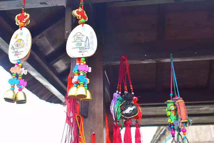 At the end of the Love Bridge, there's a stall selling prayer pendants. Various blessing bells, purses, and totem ornaments are imbued with the devout hearts of those praying, and they carry their best wishes. The bridge is festooned with red wishing ribbons, densely inscribed with earnest wishes from the deepest hearts.