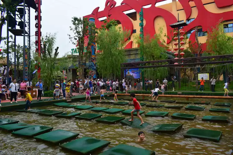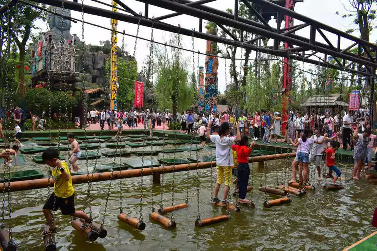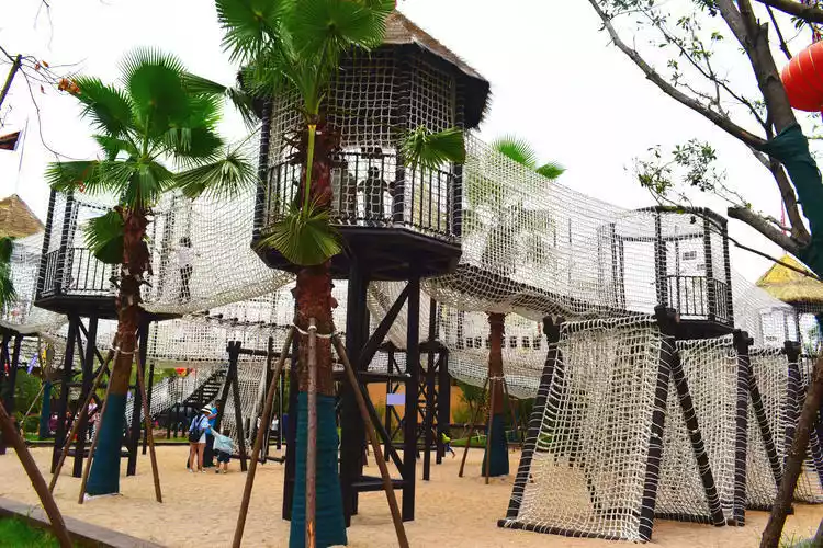 You can also play in the "Wine Pool." This is a meticulously designed water play area for visitors, featuring over a dozen water rides, including water swings, floating bridges, single-log bridges, hanging ring bridges, and rope bridges. Visitors can enjoy a joyful time splashing, playing, and being close to the water. Many children have had a blast playing there.