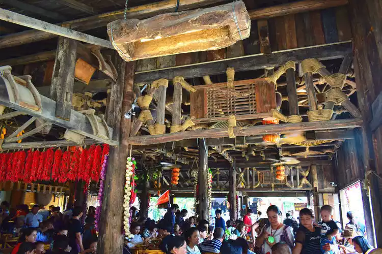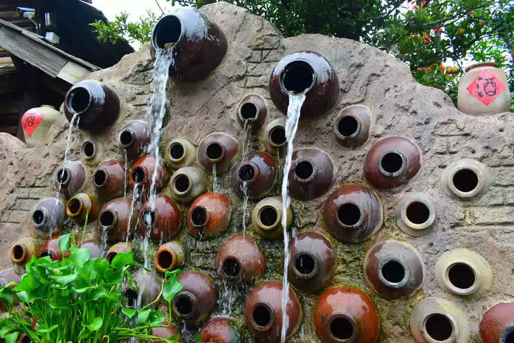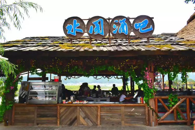 If you're thirsty, there's a fruit bar and a water bar. The water bar has a pagoda-shaped lounge area where you can relax, enjoy snacks, drink juice, and watch the cascading waters of the Tan River. Wine lovers can also visit the winery to smell the aroma and satisfy their cravings.