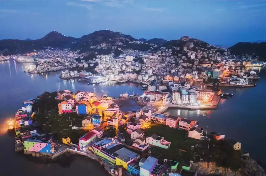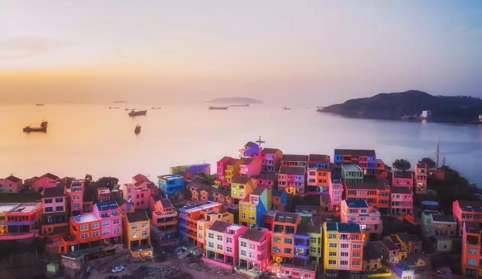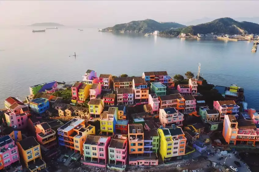Located in the southwest of Shitang Peninsula, within the Ruoshan Harbor area of Shitang's central fishing port, the colorful island of Xiaoruo holds a special place within Shitang's Ruoshan Hill, making it one of the best sunset photography and viewing spots in Shitang. Compared to many other picturesque villages, Xiaoruo Village's colorful houses are even more vibrant. The vibrant colors of red, orange, yellow, green, blue, and purple create a perfect collision here, creating a powerful visual impact. Yet, the village remains quaint and natural. At dusk, the setting sun, island, sea, and fishing boats blend into a unique and captivating scene.