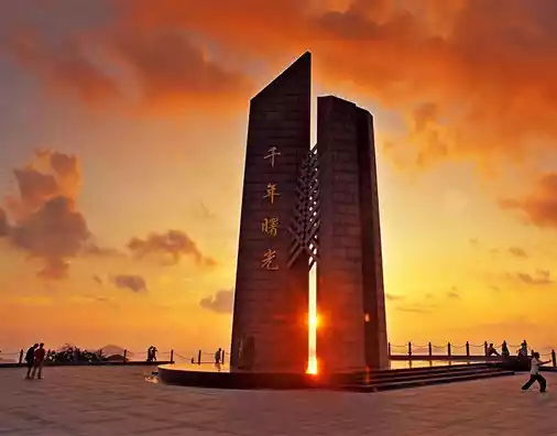 Two opposing pillars stand tall, like two upright doors, symbolizing the opening of the new century. The raised doorposts resemble hoisted sails, carrying on the past and ushering in the future. A fishing net, connected between the two sails, symbolizes the hardworking spirit of the people, braving the sea and waves to achieve a bountiful harvest. As 2018 draws to a close and a new year begins, why not come here with aspirations, greet the first rays of the new year's sunshine, and make your wishes known?