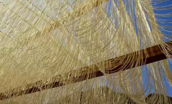 Fish noodles, also known as fish cakes, are made by mixing fish meat and mountain starch, pounding them into thin slices with a fish cake mallet, baking them in a dry pan until half-cooked, cutting them into strips (or slices), drying them in the sun, and storing them for later use.
