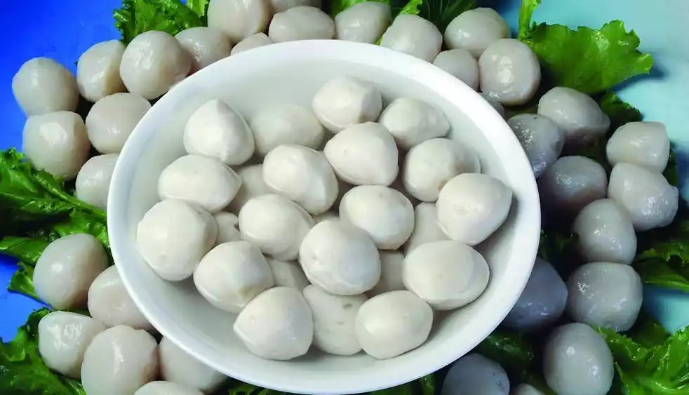 Fresh fish is deboned, skinned and gutted, minced into a paste, added with tofu (or taro), mountain starch and seasonings, and steamed in a steamer until cooked. When eaten, it is cut into small diamond-shaped pieces and added with seasonings. It is used as a condiment for serving in a bowl at a banquet or in soup cakes or noodle soup.