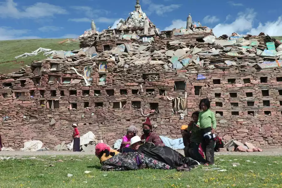 Modern archaeological excavations reveal that the Stone Scripture City is only one-third of its actual size. Due to the soft grass, gravity has sunk two-thirds of the Stone Scripture City into the ground. The stone slabs used to construct the Stone Scripture City are not ordinary stones, but Mani stones engraved with scriptures, Buddha images, and auspicious patterns. The Stone Scripture City has entrances leading deeper into the interior, and the stone piles within are separated by prayer paths. In other words, it is a Mani pile resembling a "castle," and due to its enormous size, it is called a "city."