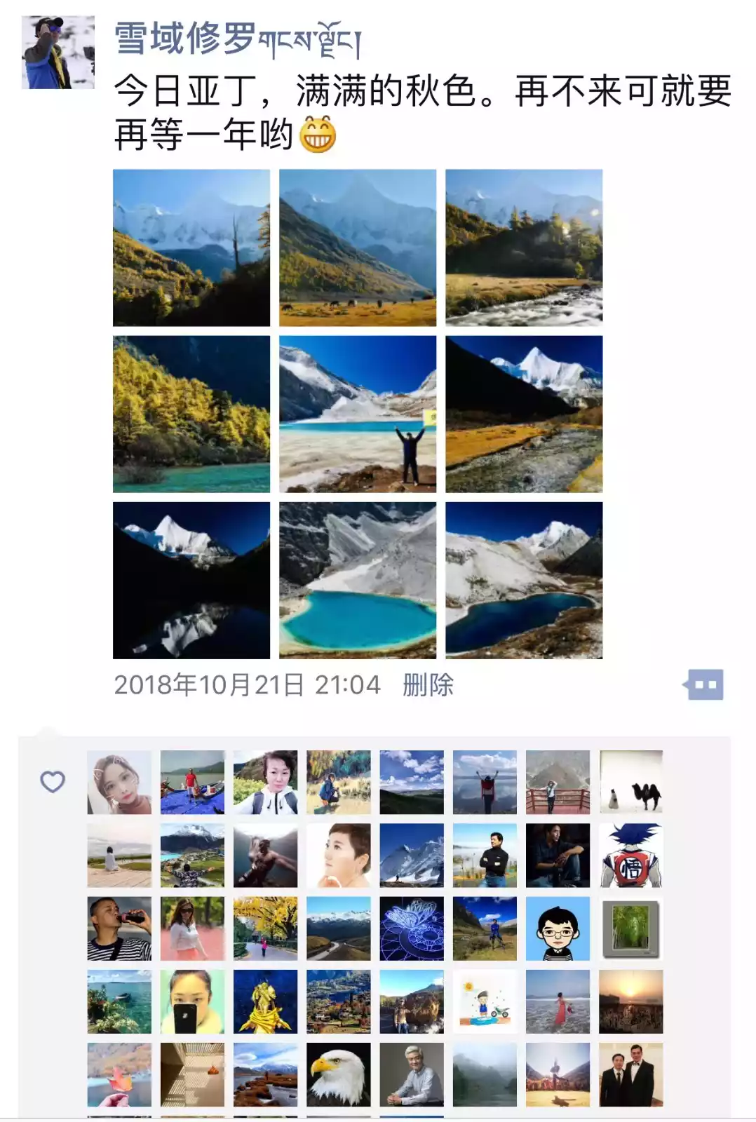 The rich autumn colors of Xiannairi Snow Mountain, picture from tourists@士官长
