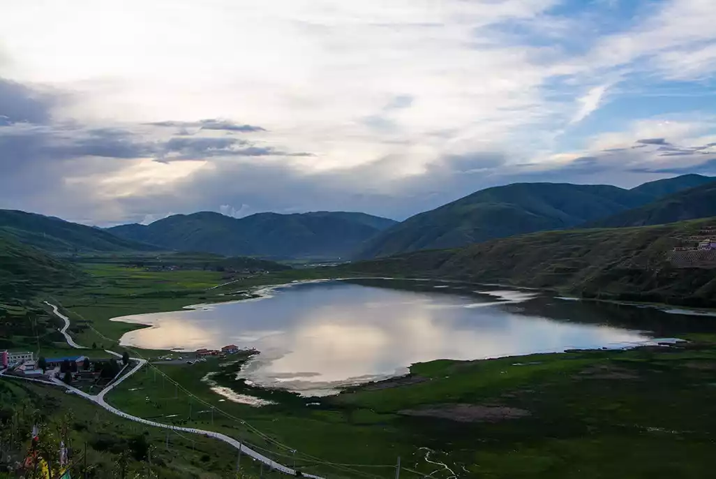 Cokha Lake lies nestled deep in the mountains of Mari Township, Xinlong County. Though small, it boasts the most dreamy reflections in all of western Sichuan! Its crystal-clear waters, like a mirror, capture the blue sky, white clouds, green trees, emerald hills, and crimson temples like a kaleidoscopic spectacle, as if the entire world were contained within its embrace. Originally, this small lake had no name until 1358, when Venerable Phurba Tenzin built a Kagyu monastery near the lake, naming it Cokha Monastery ("co" means lake, "ka" means edge, meaning "lakeside temple"). Since then, the Tibetan people have habitually referred to the lake as Cokha Lake.