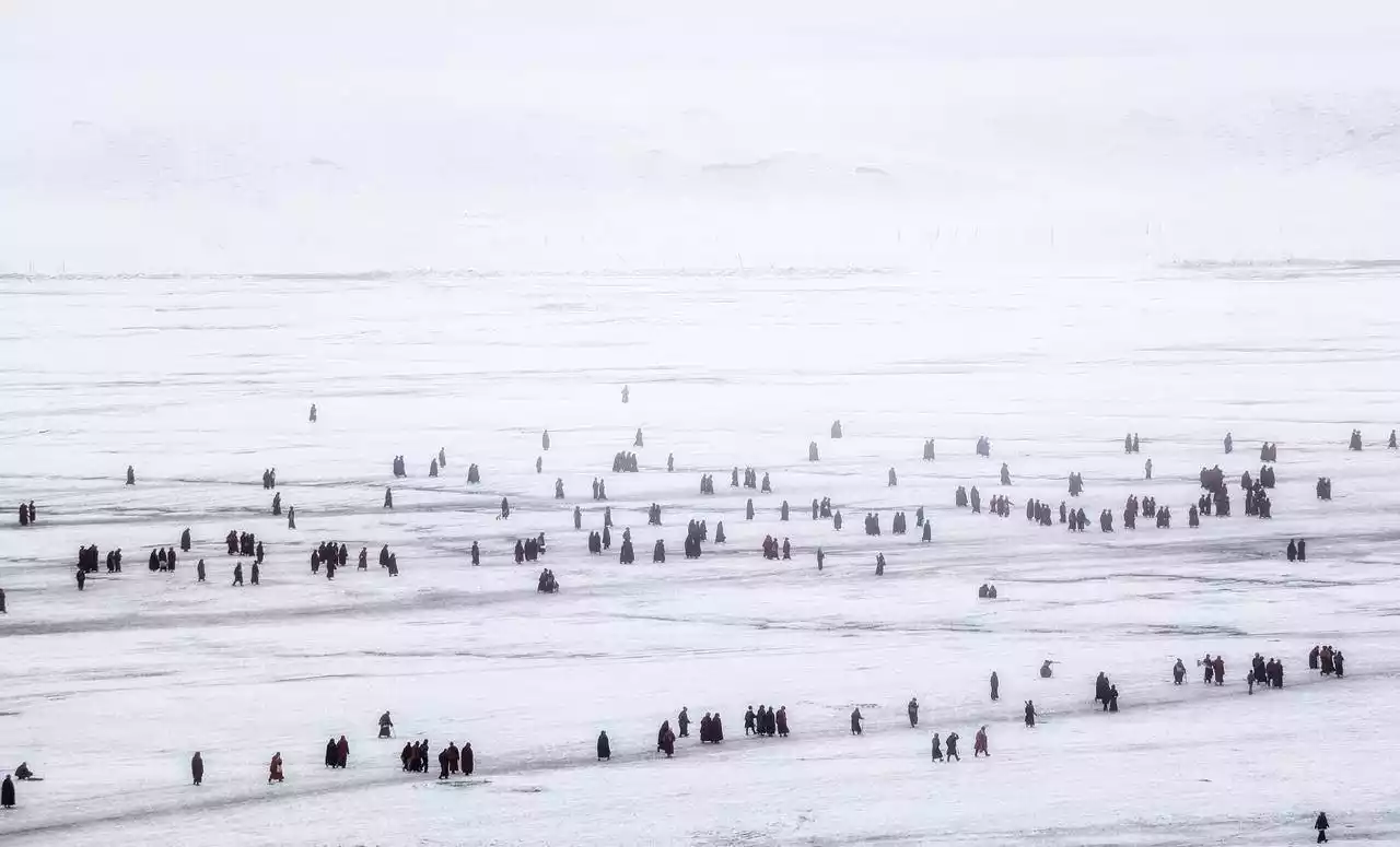 Legend has it that after each campaign, King Gesar would invite his fellow soldiers to bathe in the abyss to wash away the dust of battle and to heal injuries and illnesses. Nestled in a forest meadow, nestled against the sacred Zhajingabo Mountain and facing Cuopu Lake, stands a magnificent monastery—Cuopu Monastery, a member of the Nyingma school of Tibetan Buddhism. While the exact date of its construction is uncertain, prayer flags flutter and chants blare. Day after day, it greets each sunrise. Monks often sit by the lake, calling out to the surface in deep, resonant voices. Only then do the fish flock to the lake to feast on the food the monks throw. Year after year, what seemed like a casual pastime has become a vital cultural event at Cuopu Lake—calling to the fish.