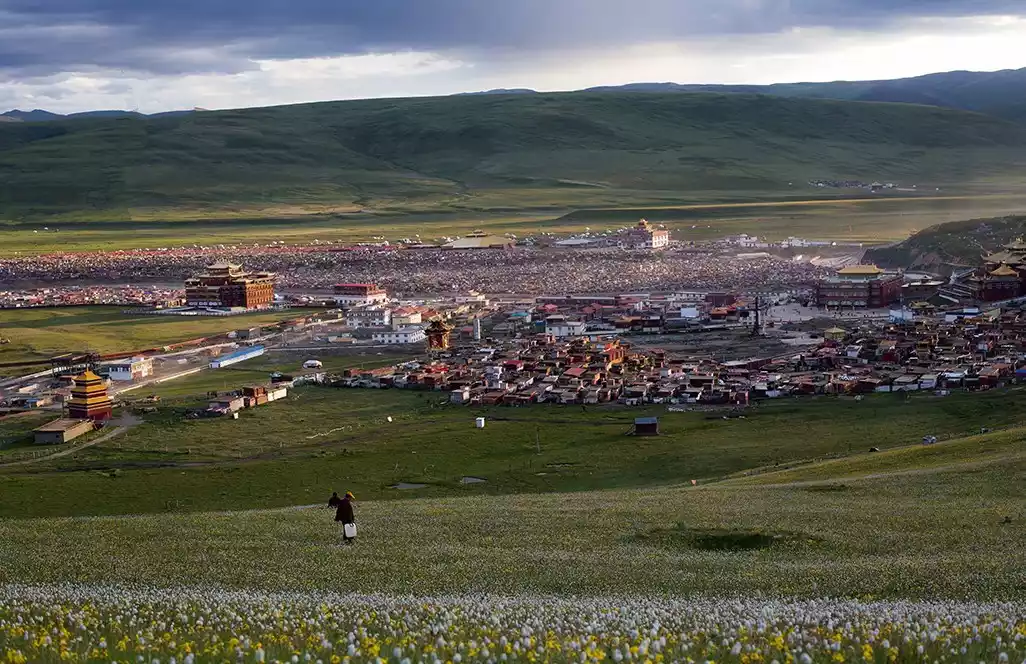 Yachen Gar seamlessly blends grassland scenery with Buddhist sanctuary, offering breathtaking views and a vibrant cultural atmosphere replete with Buddhist chants. The relatively flat terrain allows for panoramic views from the vantage point. Compared to Seda, this area is more suitable for capturing large-scale scenes, offering a more pristine cultural scene, and the monks are more friendly.