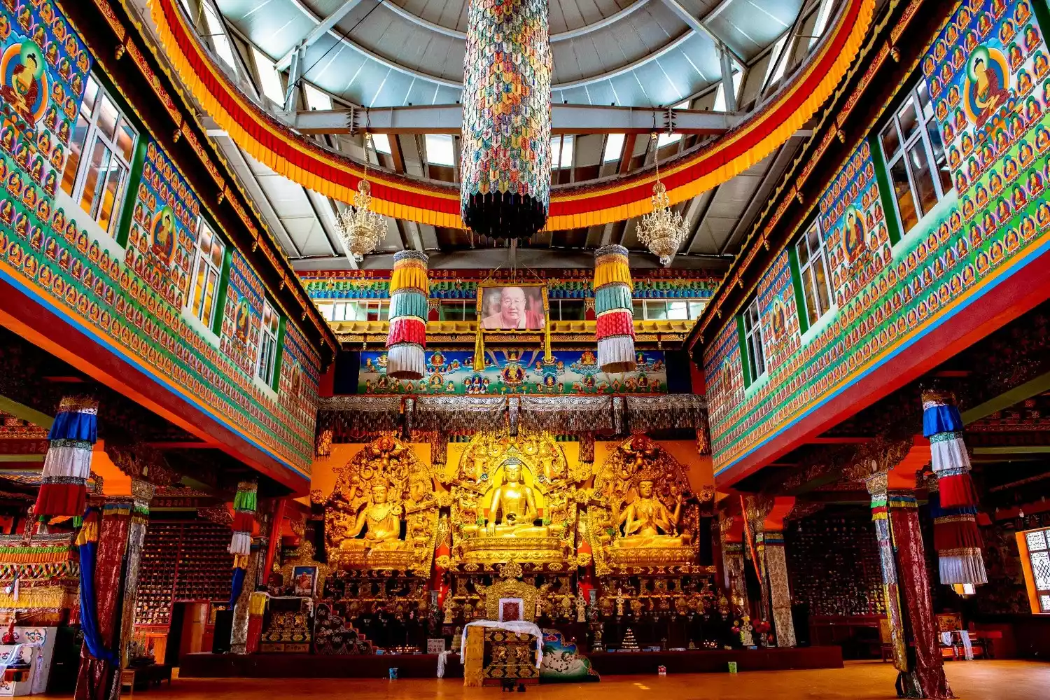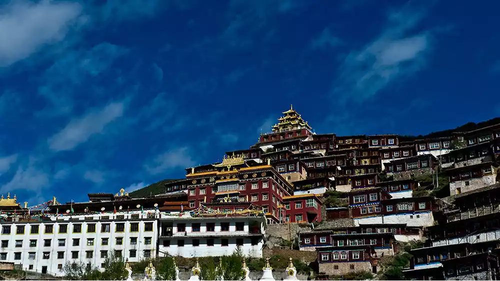 The highest point of Baiyu Temple still boasts a magnificent golden mandala, a hallmark of many Nyingma temples. Historically, thanks to the strong financial support of the local chieftains, Baiyu Temple boasts three large Buddha halls, seven scripture halls, and three stupas. The largest scripture hall can accommodate 2,000 people for chanting and meditation. In addition, there are countless monk quarters and smaller scripture halls used for lectures and study. At its peak, the temple boasted tens of thousands of monks. It was the largest Nyingma temple in Kham, and remains so today.