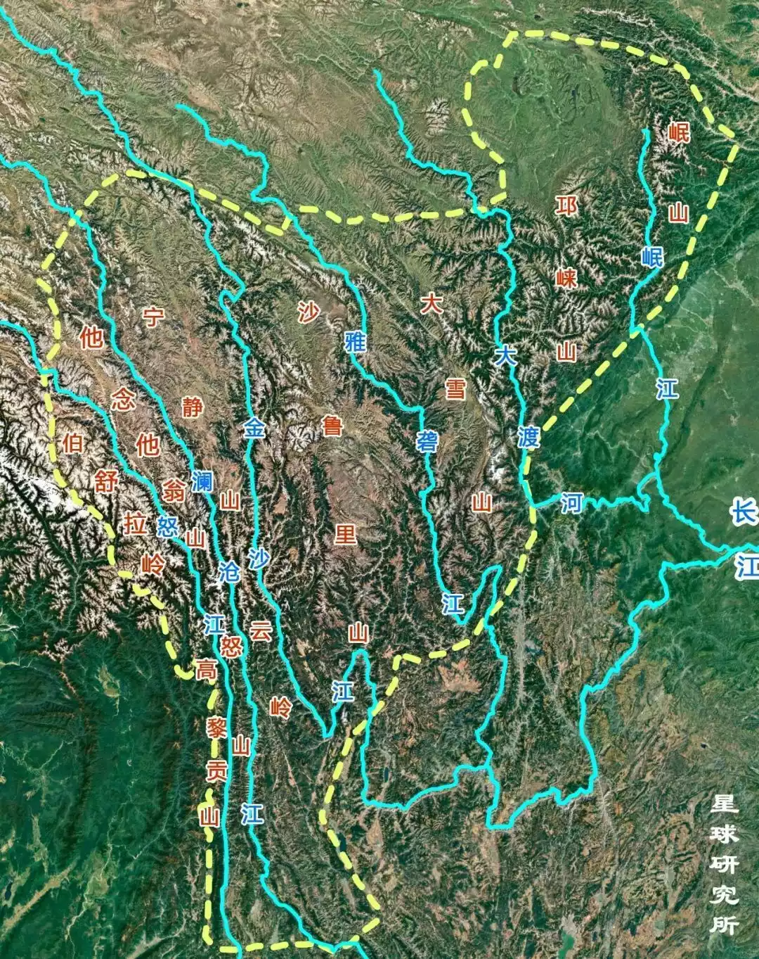 Map of the Hengduan Mountains' water system, image from the Planetary Research Institute